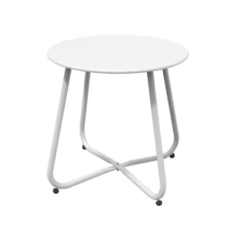 Add a pop of modern style to your event or lounge space with our White Steel Side Table. Crafted from durable steel, this table features clean lines and a smooth powder-coated finish in a nice white hue. Its compact size makes it perfect as a corner table, lamp table, side sofa table, or patio accent. Adjustable leveling feet provide stability and protect your floors, ensuring it stays perfectly balanced on any surface.