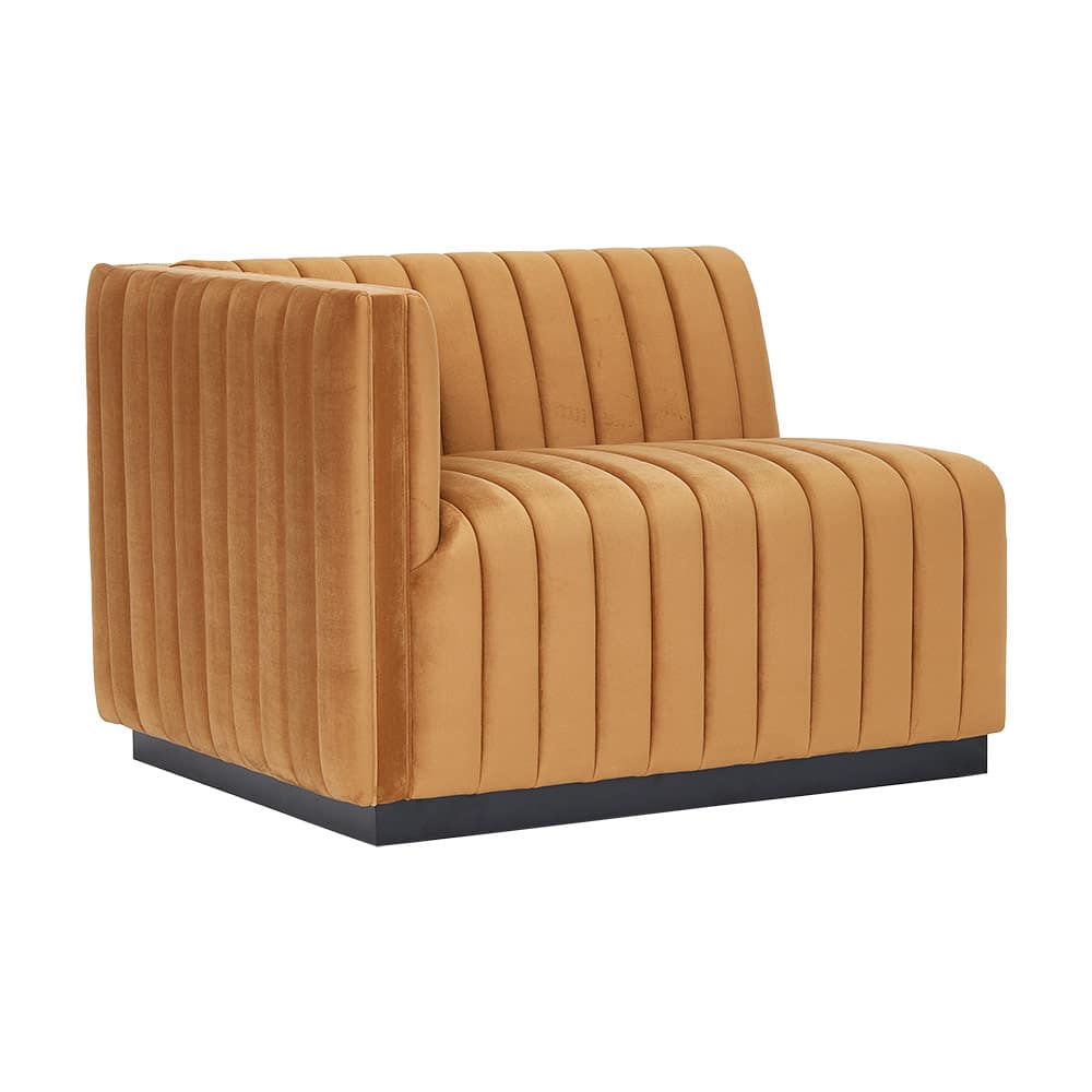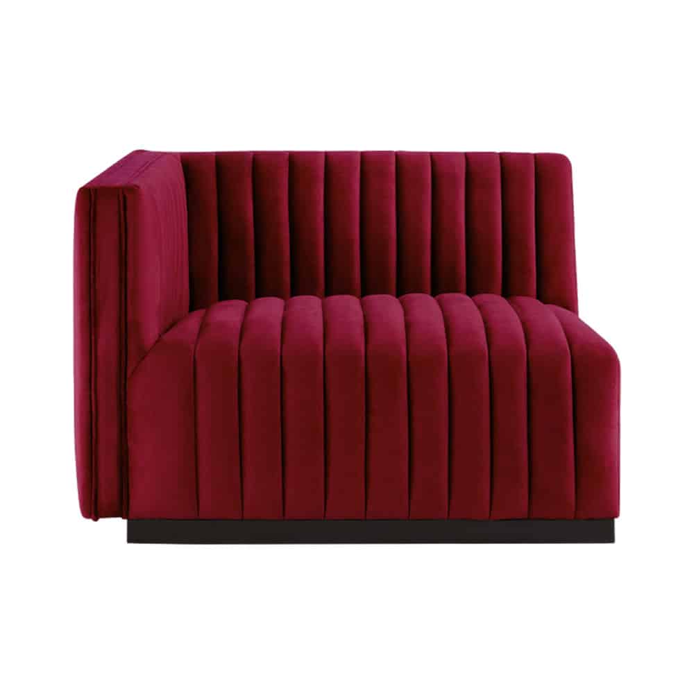 Bring striking sophistication and plush comfort to your lounge layout with the Mansfield Velvet Sectional – Right Arm. Featuring deep channel tufting and luxe velvet upholstery, this modular piece pairs seamlessly with other Mansfield sectional units for customized event lounge configurations.